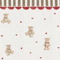 Teddy bears with ornament -tapetissa nallet saavat hienostuneen, ranskalaisvaikutteisen ilmeen sävyjen kautta. Yläosan ornamenttireuna korostaa kauniisti katon linjoja. Tapetin tausta muistuttaa graafisesti kangasta, kuten vakosamettia, ja nallet on maalattu vesiväreillä, mikä tekee kokonaisuudesta erityisen pehmeän ja elävän.